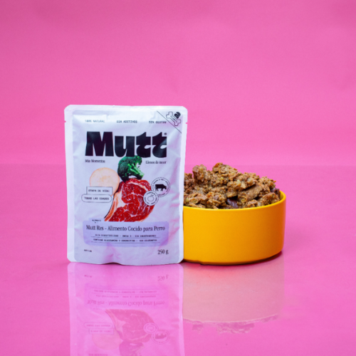 ¡El único sobre en México con calidad de consumo humano! 🥩 Mutt Res es un alimento cocido 100% natural, libre de granos, conservadores y químicos. Con 85% carne de res y adicionado con Omega 3 (aceite de salmón), es la nutrición más pura y deliciosa que puedes ofrecerle a tu perro.